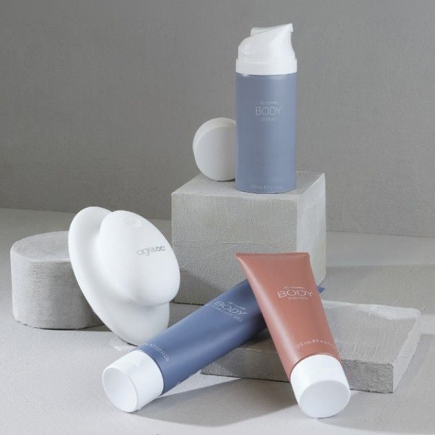 Med ageLOC WellSpa iO system har vi föreställt oss en SPA-upplevelse hemma. De medföljande topiska ämnena (ageLOC Body Serum och ageLOC Body Activating Gel) erbjuder en sömlös leave-on-upplevelse med noggrant utvalda ingredienser. ageLOC Body Polish ger samtidigt kompletterande fördelar i form av rengöring och polering av huden för en jämn och strålande yta under tiden som ageLOC Dermatic Effects verkar för att förbättra hudens fasthet i form av din dagliga body contouring lotion.